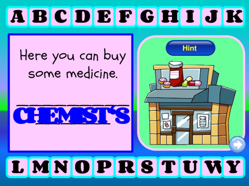 ABCDEFGHIJKLMNOPRSTUWYHere you can buy some medicine._______________CHTEMISS‘