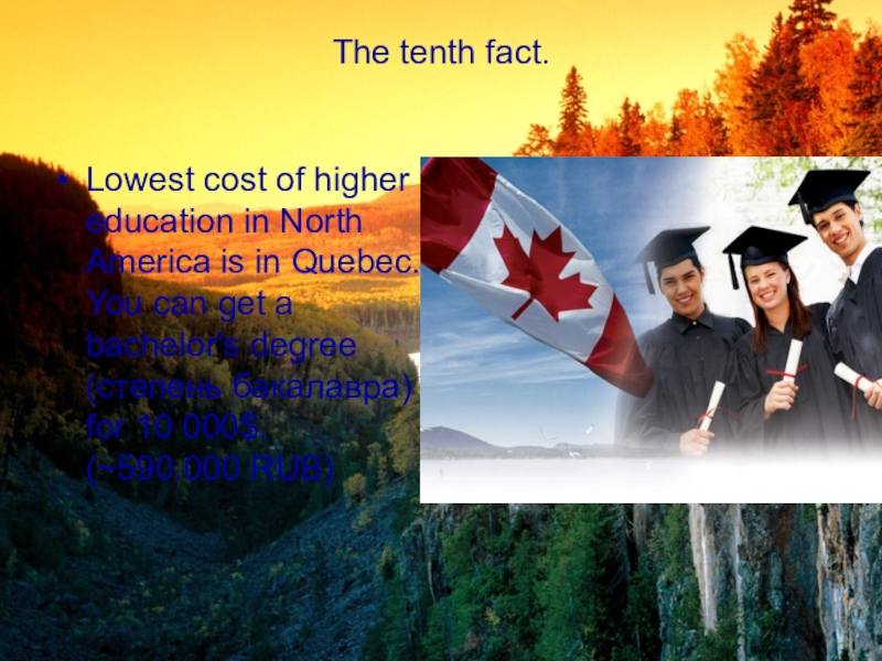 The tenth fact. Lowest cost of higher education in North America is in Quebec. You can get