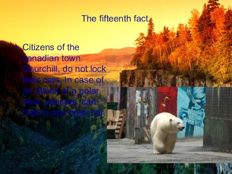 The fifteenth fact. Citizens of the canadian town Churchill, do not lock their cars. In case of