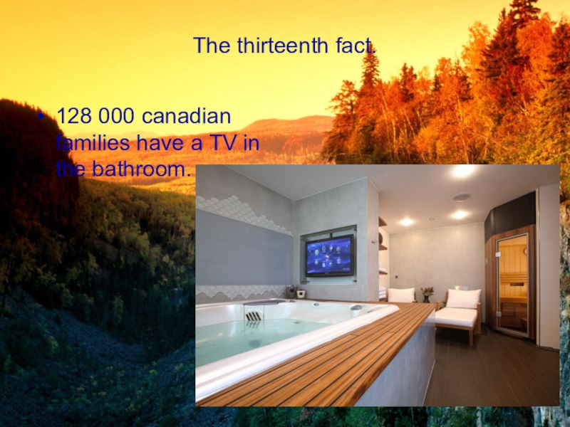 The thirteenth fact. 128 000 canadian families have a TV in the bathroom.