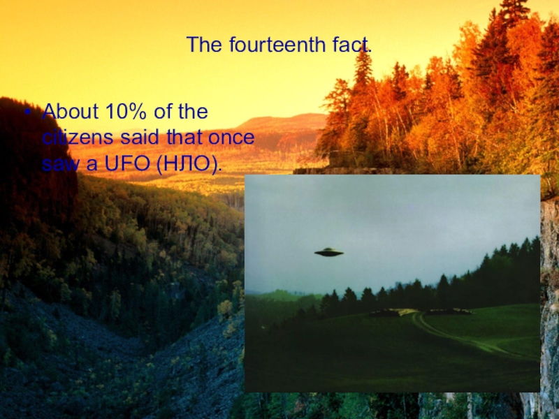 The fourteenth fact. About 10% of the citizens said that once saw a UFO (НЛО).