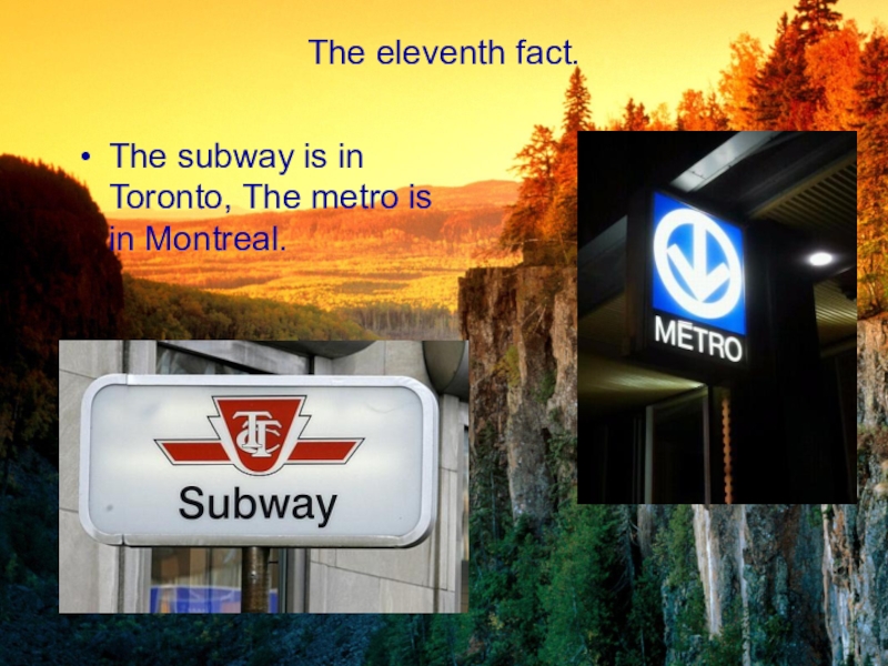 The eleventh fact. The subway is in Toronto, The metro is in Montreal.