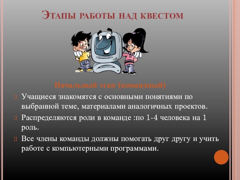 Все члены команды должны помогать друг другу и учить работе с компьютерными программами.
