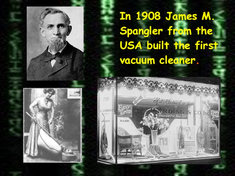 In 1908 James M.Spangler from theUSA built the firstvacuum cleaner.