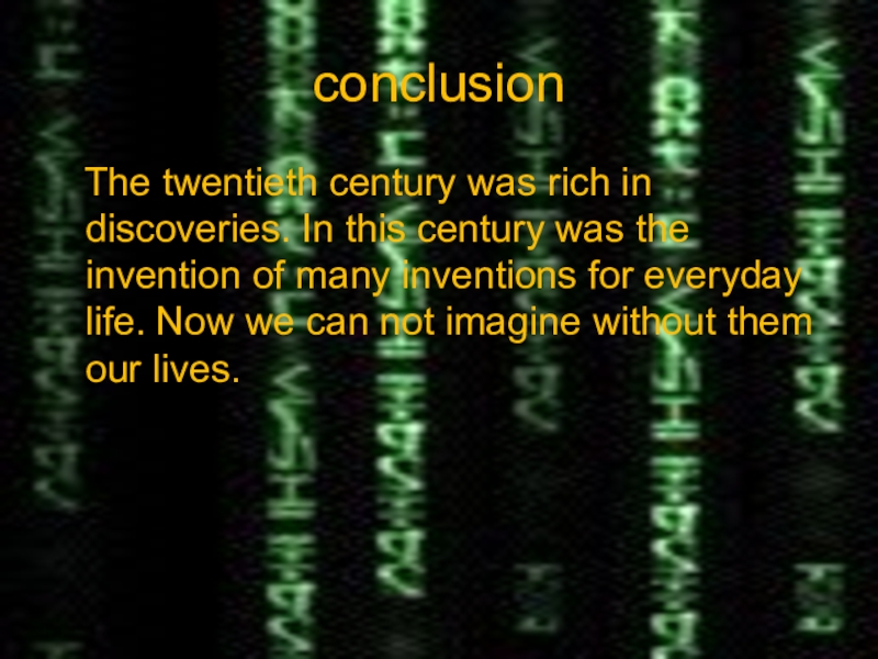 conclusion  The twentieth century was rich in discoveries. In this century was the invention of many