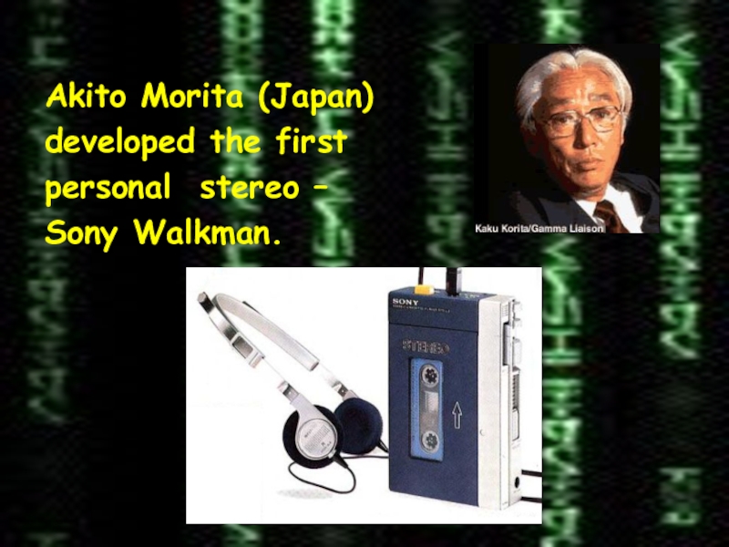 Akito Morita (Japan)developed the firstpersonal stereo –Sony Walkman.