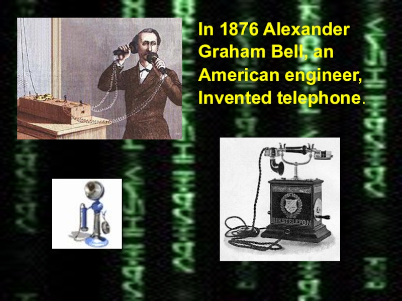 In 1876 AlexanderGraham Bell, anAmerican engineer,Invented telephone.
