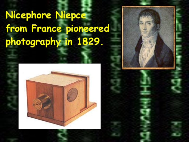 Nicephore Niepcefrom France pioneeredphotography in 1829.