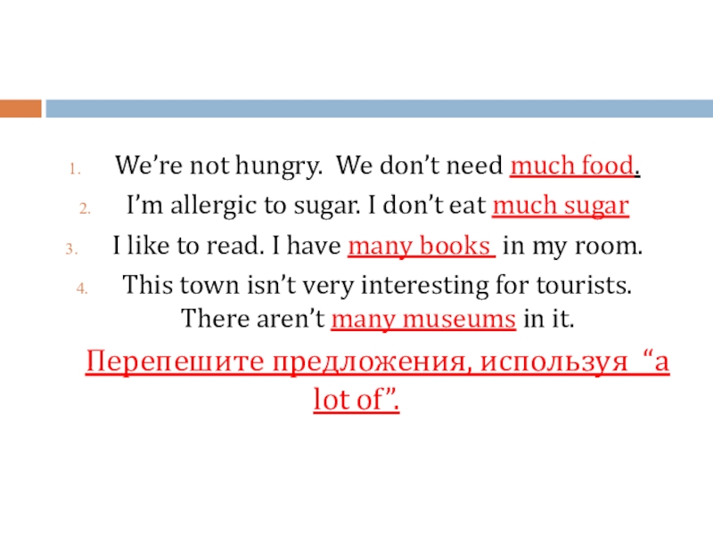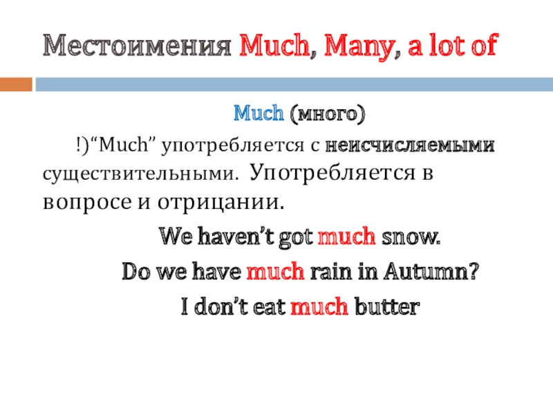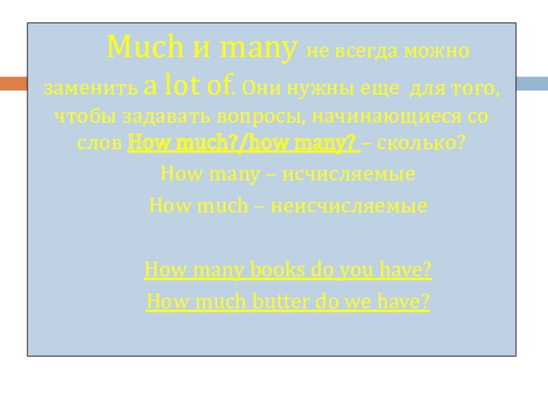 Слайд 17Much и many не всегда можно заменить a lot of. Они