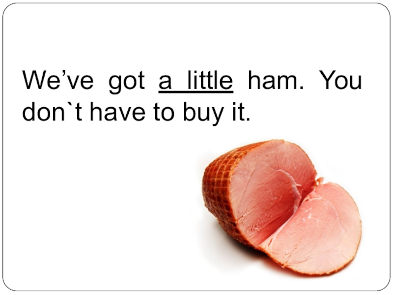 Слайд 21We’ve got a little ham. You don`t have to buy it.