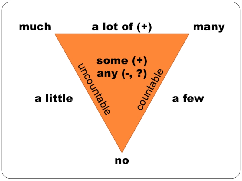 Презентация, доклад на тему Исчисляемые и неисчисляемые существительные в английском языке (some, any, many, much, a lot of, a few, a little)