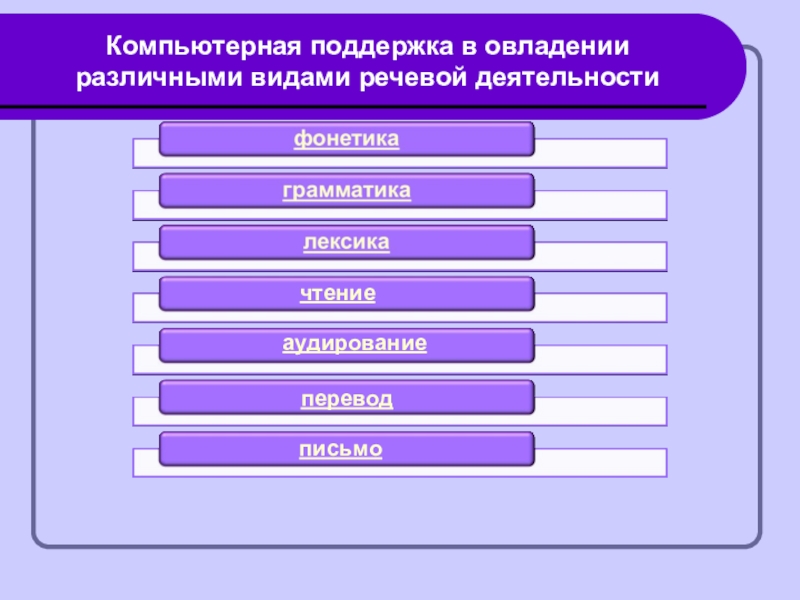 Компьютерная поддержка в овладении различными видами речевой деятельностичтениеаудированиепереводписьмо
