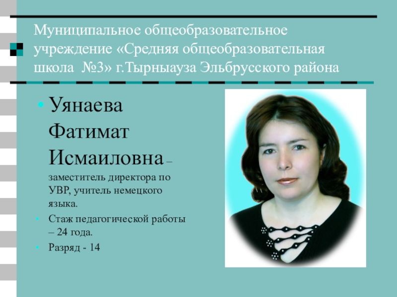 Исмаиловна – заместитель директора по УВР, учитель немецкого языка.