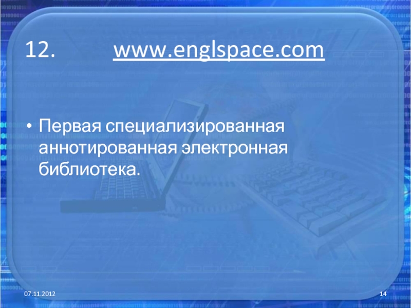 12.     www.englspace.comПервая специализированная аннотированная электронная библиотека.