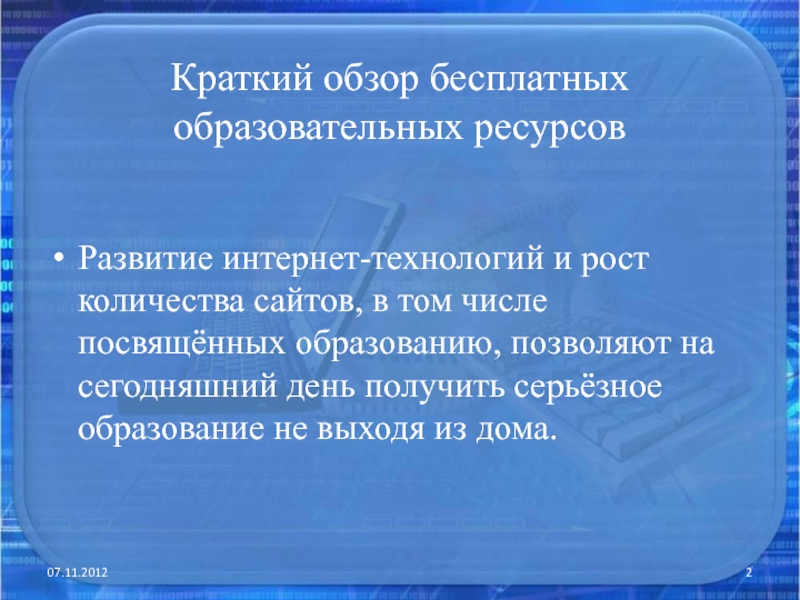 Слайд 2Краткий обзор бесплатных образовательных ресурсов
