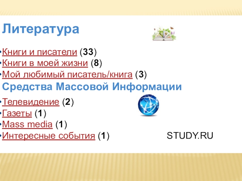Это сайт презентаций, где можно хранить и обмениваться своими презентациями, докладами, проектами, шаблонами в формате PowerPoint с другими пользователями. Мы помогаем школьникам, студентам, учителям, преподавателям хранить и обмениваться учебными материалами.