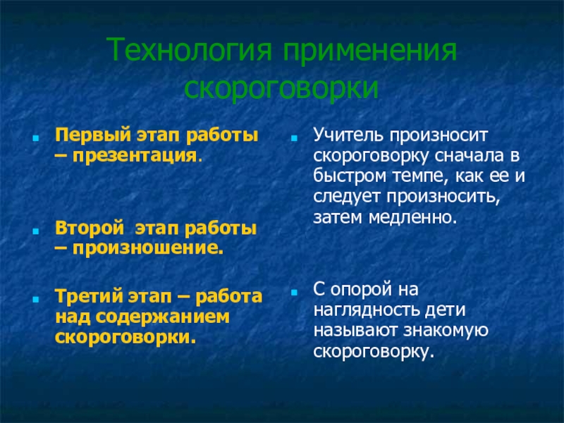 Учитель произносит скороговорку сначала в быстром темпе, как ее и следует произносить, затем медленно.