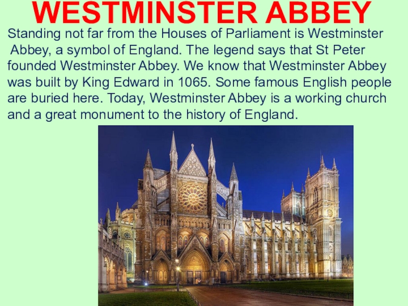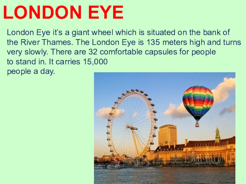 the Houses of Parliament, Westminster Abbey, the London Eye.
