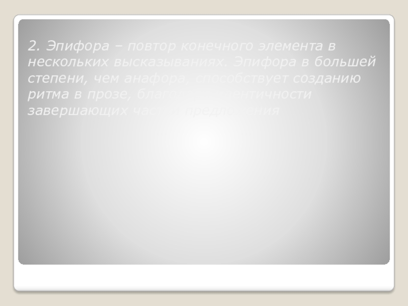 высказываниях. Эпифора в большей степени, чем анафора, способствует созданию ритма в прозе, благодаря идентичности завершающих частей предложения