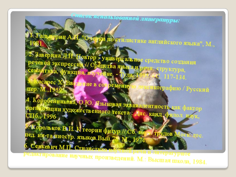 1. Гальперин А.И. "Очерки по стилистике английского языка", М.,