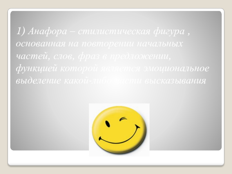 Слайд 61) Анафора – стилистическая фигура , основанная на повторении начальных частей,