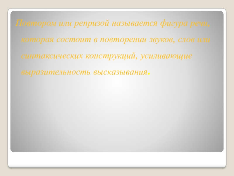 Слайд 4Повтором или репризой называется фигура речи, которая состоит в повторении звуков,