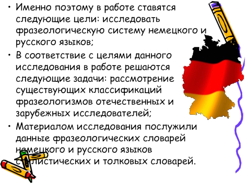 Именно поэтому в работе ставятся следующие цели: исследовать фразеологическую систему немецкого