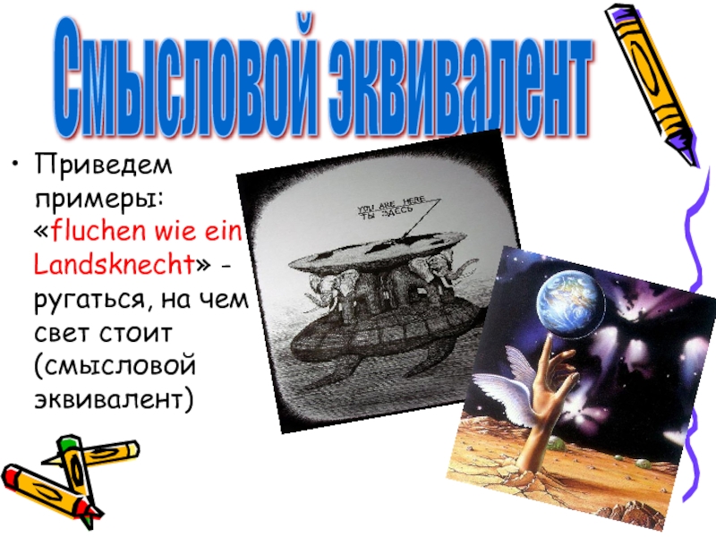 Слайд 21Приведем примеры: «fluchen wie ein Landsknecht» - ругаться, на чем свет