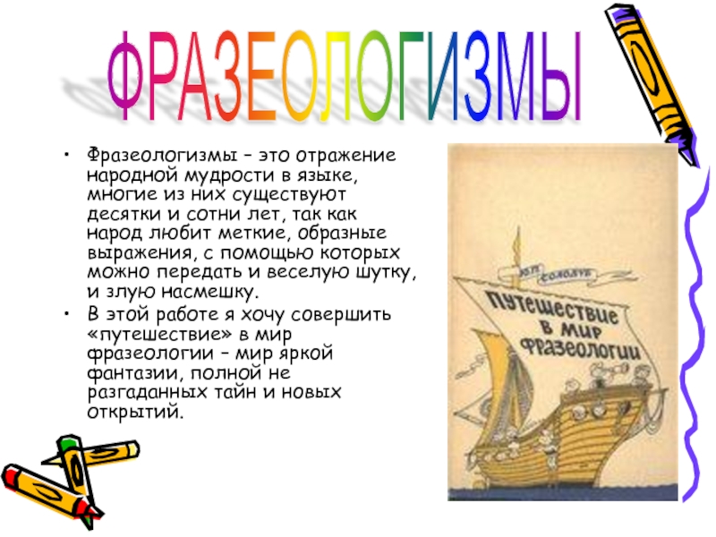 В этой работе я хочу совершить «путешествие» в мир фразеологии – мир яркой фантазии, полной не разгаданных тайн и новых открытий.