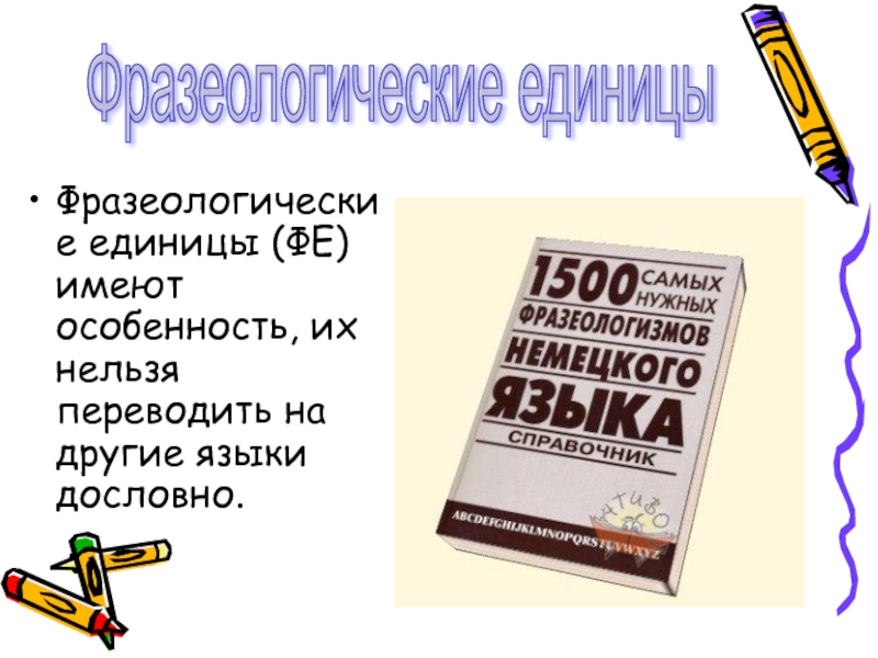 Фразеологические единицы (ФЕ) имеют особенность, их нельзя переводить на другие языки