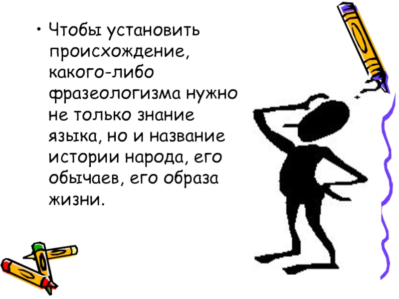 Чтобы установить происхождение, какого-либо фразеологизма нужно не только знание языка, но