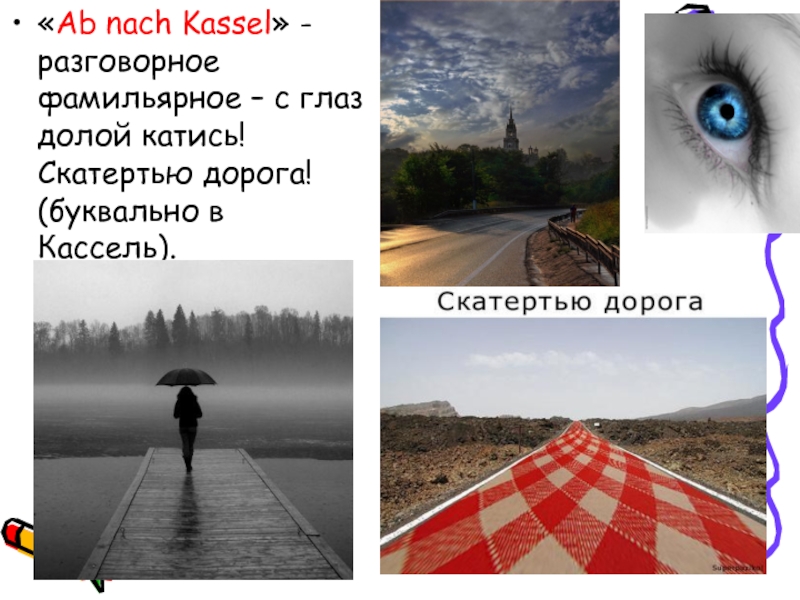 «Ab nach Kassel» - разговорное фамильярное – с глаз долой катись!