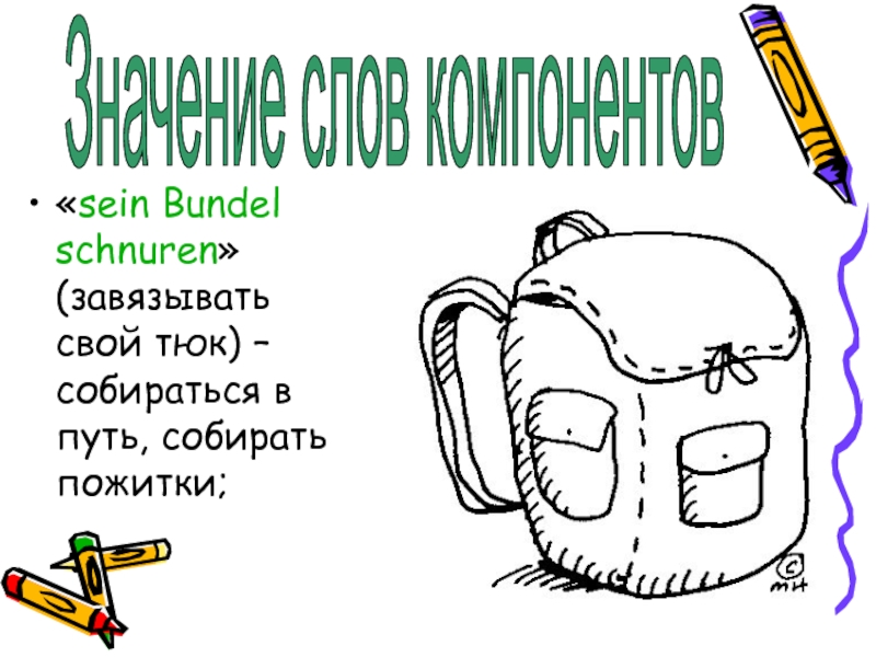 Слайд 17«sein Bundel schnuren» (завязывать свой тюк) – собираться в путь, собирать