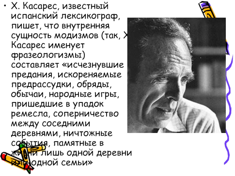 Х. Касарес, известный испанский лексикограф, пишет, что внутренняя сущность модизмов (так,