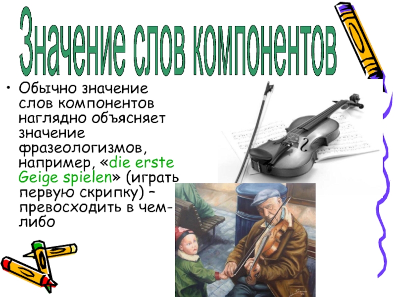 Geige spielen» (играть первую скрипку) – превосходить в чем-либо