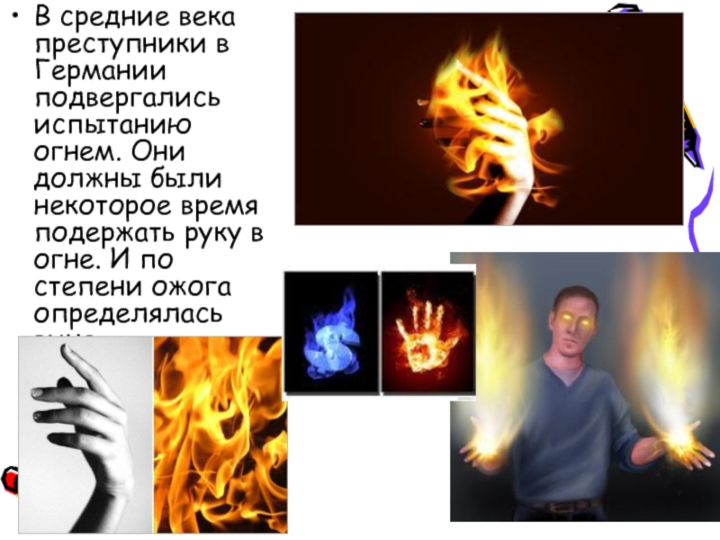 В средние века преступники в Германии подвергались испытанию огнем. Они должны