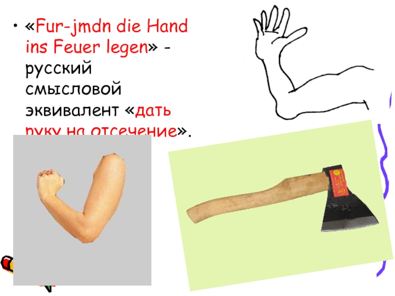 «Fur-jmdn die Hand ins Feuer legen» - русский смысловой эквивалент «дать