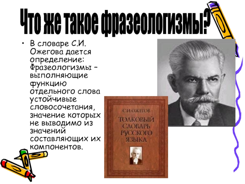 В словаре С.И.Ожегова дается определение: Фразеологизмы – выполняющие функцию отдельного слова