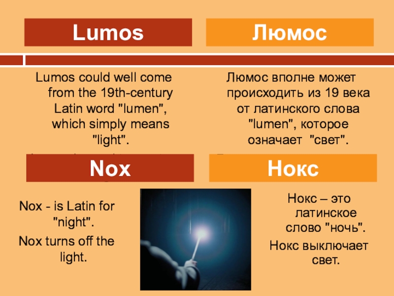Люмос вполне может происходить из 19 века от латинского слова "lumen", которое означает "свет".