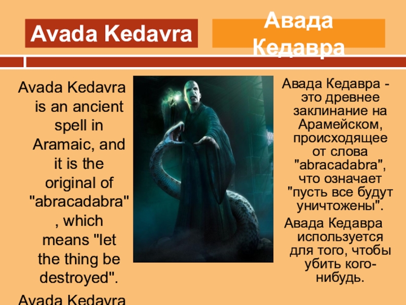 Авада Кедавра используется для того, чтобы убить кого-нибудь.