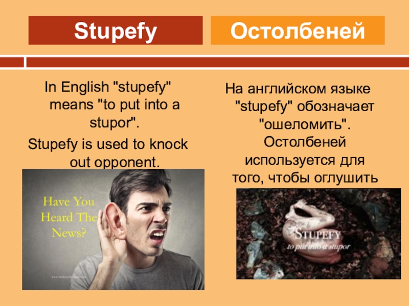 На английском языке "stupefy" обозначает "ошеломить". Остолбеней используется для того, чтобы оглушить противника.