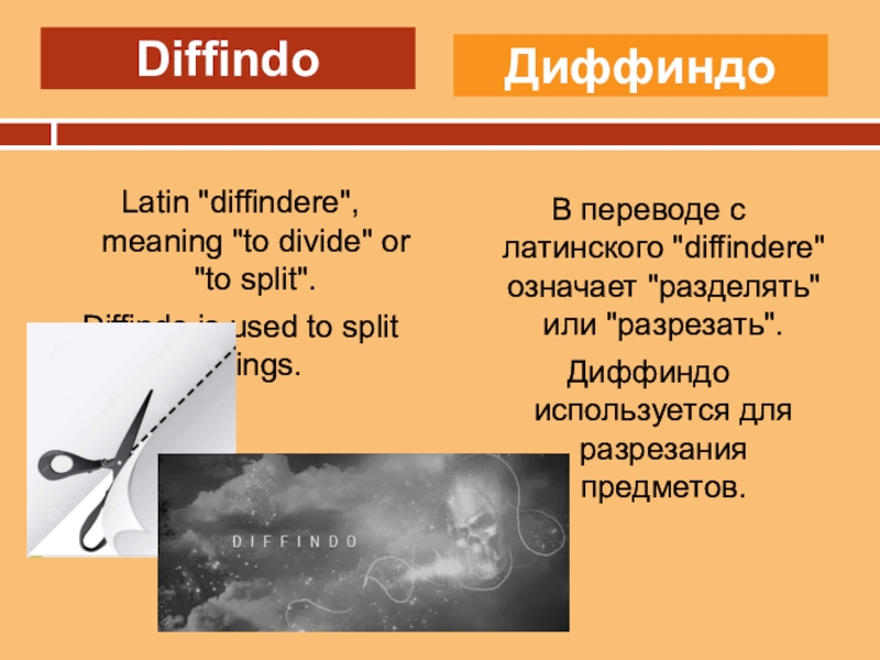 Диффиндо используется для разрезания предметов.