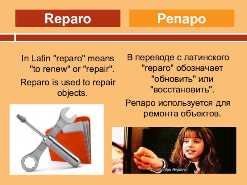 Репаро используется для ремонта объектов.