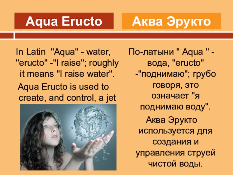По-латыни " Aqua " - вода, "eructo" -"поднимаю"; грубо говоря, это означает "я поднимаю воду".