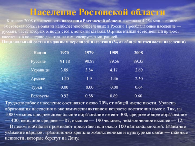 В целом в области проживают представители около 100 национальностей. Взаимное уважение народов, традиционно крепкие хозяйственные и культурные связи — главные ценности, которые берегут на Дону.