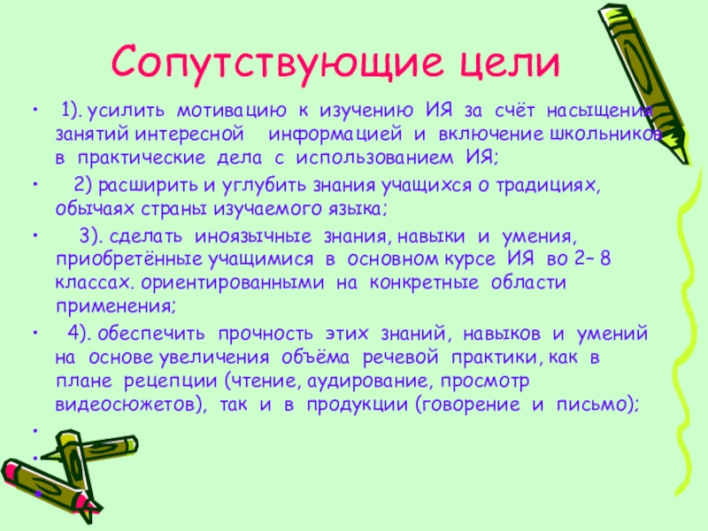 1). усилить мотивацию к изучению ИЯ за счёт насыщения
