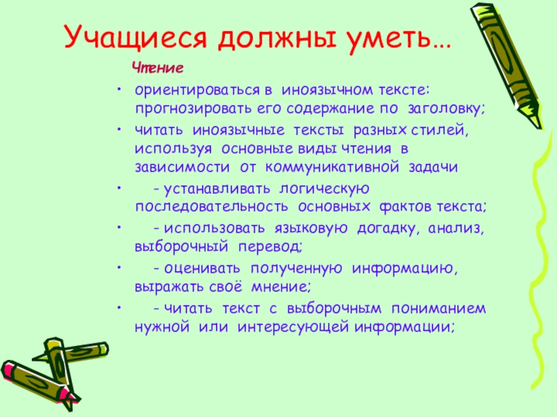 читать иноязычные тексты разных стилей, используя основные виды чтения в зависимости от коммуникативной задачи