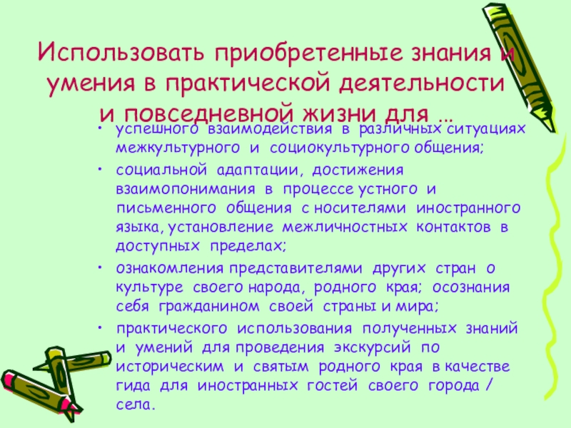 Слайд 30Использовать приобретенные знания и умения в практической деятельности и повседневной жизни