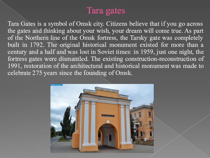 Tara gates Tara Gates is a symbol of Omsk city. Сitizens believe that if you go across
