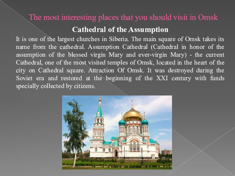 The most interesting places that you should visit in OmskCathedral of the Assumption It is one of